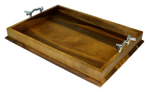 Serve your guests and family in fine style with this elegant serving tray handcrafted from richly grained acacia hardwood and solid aluminum. This generously sized tray is great for serving your favorite hors d'oeuvres and appetizers or a complete meal in bed. The silvery handles make this tray easy to carry and gracefully contrast with the handsomely varied acacia wood grain. ...Read more