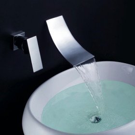 Function: Bathroom Sink Faucets Feature: Waterfall, Widespread, Wall Mount Style: Contemporary Finish: Chrome Installation Holes: Two Holes Number of Handles: Single Handle Spout Length (cm): 19 Spout Width (cm): 12.5 Valve Type: Ceramic Valve Faucet Body Material: Brass Faucet Spout Material: Brass Faucet Handle Material: Zinc Alloy Net Weight (kg): 1.4 Shipping Weight (kg): 1.5.Features:> Comes with all necessary accessories for installation.> Featured with durable ceramic valves ensuring there are no water leaks.> Available to work more than 600,000 times at a water temperature of 90 degrees.> High quality material and finishing tested at a high water pressure of 1.6Mpa. ...Read more